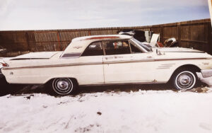1963 Meteor S-33 two-door hardtop, 260 V-8, automatic bucket seats, console, car is complete. Damage to left quarter. $2,800.
